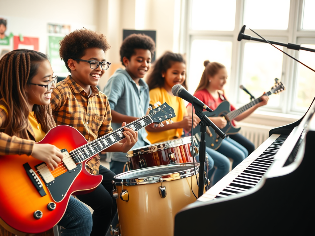 Chant, batterie, guitare, basse, solfège, éveil instrumental